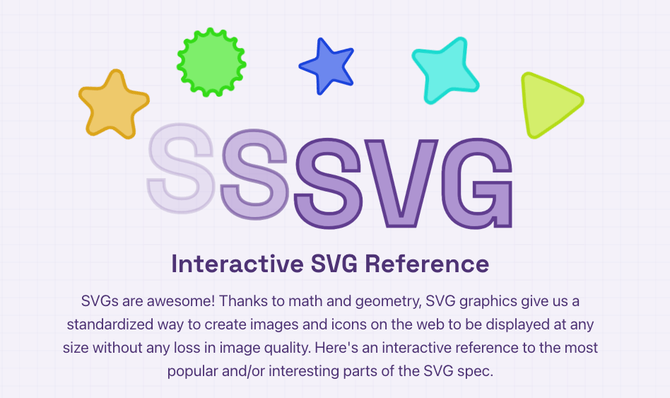 This site offers an interactive component reference for the SVG specification. At the bottom of the page, you can find some useful online tools and design resources to help you quickly generate SVG elements.